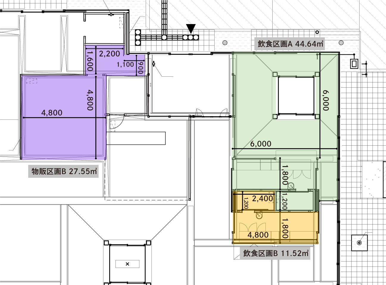 【飲食区画A 44.64平方メートル】(20,000円/月額)