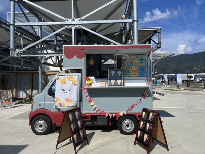 クレープとフルーツドリンクのキッチンカーAndyMommy(アンディマミー)です。 小麦粉、牛乳、砂糖とたっぷりのバターを使ったクレープ生地はモッチリとしています! 20種類あるので、お気に入りの味がきっと見つかると思います!