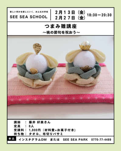 2/13(金)、2/27(金)つまみ雛講座【事前予約制】